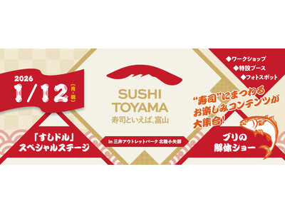 1月12日(月曜日祝日)に、三井アウトレットパーク北陸小矢部において、「寿司といえば、富山」イベントが開催されます。県も PR ブース出展するほか、ブリの解体ショーや「寿司」ワ ークショップな...