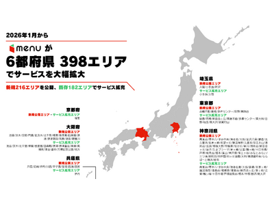 menu、関東・関西の合計216エリアを新たに公開 既存182エリアのサービス拡充とあわせ事業拡大