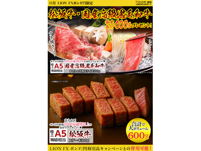 LION FXポンド円限定 松阪牛・国産高級黒毛和牛最大600gプレゼント!を実施!