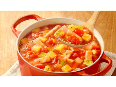 洋食屋の味わいを目指して濃厚な煮込み感にブラッシュアップ!『トマトで作る ミネストローネ用スープ』リニューアル発売