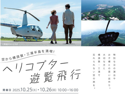 本事業は、観光誘客や地域経済の活性化を図るため、ヘリコプターを「横須賀三浦半島エリアの新しい観光交通体験の手段」として活用し、地域の自然歴史文化資源のさらなる活用と発信力向上に取り組みます。地...