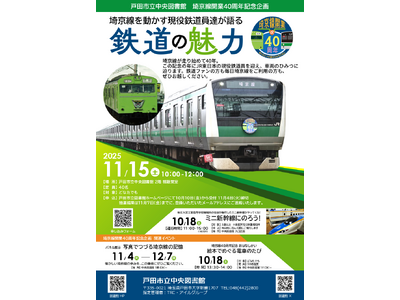 戸田市立中央図書館 埼京線開業40周年記念企画 今年、埼京線は開業から40周年を迎えます。これを記念して、埼玉県戸田市立中央図書館では、JR東日本の現役鉄道員を招き、トークイベント「埼京線を動...