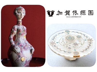 【加賀依緑園】秋の山中温泉に映える月替わり工芸展。九谷焼の艶めき『工藤 完子 展-女神たち-』(開催中)/ガラスのきらめき『塚原 梢 展』(11月7日~)を開催