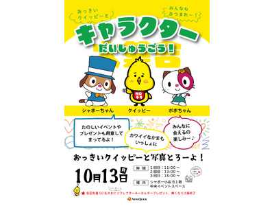 ニュー・クイック公式キャラクター「クイッピー」登場 シャポー小岩でキャラクター大集合イベント開催!写真撮影会やじゃんけん大会で盛り上がろう!先着プレゼント&お買い得商品もご用意