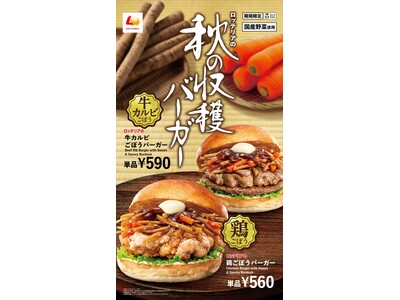 【ロッテリア】"鶏ごぼう"と"牛カルビごぼう"で秋を感じる和風バーガーが登場!ロッテリア「秋の収穫バーガーフェア」開催!