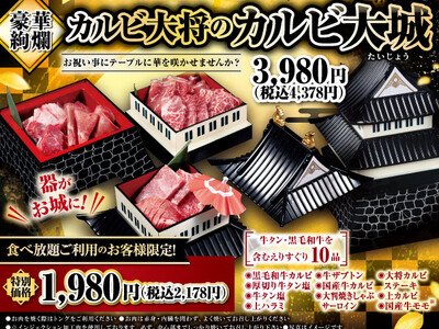 思わず写真を撮りたくなる!高さ約25cm!カルビ大将が「カルビ大城」を築城?!お城の中身は豪華なお肉が勢ぞろい