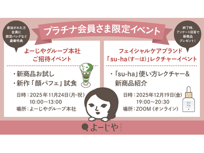 【本日10月8日(水)より受付開始】「よーじやメンバーズ」のプラチナ会員限定イベント開催決定!本社へのご招待やスキンケアのレクチャーなど特別な体験を。