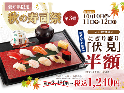 【にぎり長次郎】愛知県限定!10/10(金)から秋の寿司祭第3弾開催!