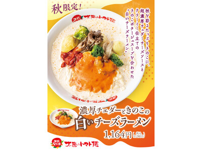 ~秋に温まる!濃厚チェダーときのこポタージュ~ トマトラーメンの専門店「太陽のトマト麺」(運営:株式会社一品香)は、トマトラーメン専門店「太陽のトマト麺」において、2025年10月8日(水)よ...