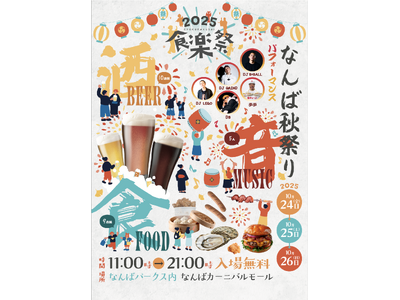 大阪なんばのど真ん中に、秋の大祭りがやってくる! 2025年10月24日(金),25日(土),26日(日)の3日間「なんば秋祭り[食楽祭]」をなんばパークス「なんばカーニバルモール」(大阪市浪...