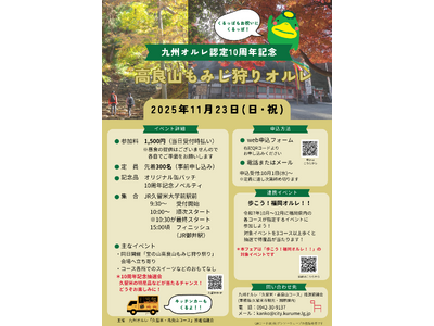 「九州オルレ認定10周年記念 高良山もみじ狩りオルレ」開催!抽選で久留米の特産品等が当たるチャンスも! イベントチラシ 「オルレ」は自然を感じながら、自分のペースで楽しむトレッキングです。秋か...