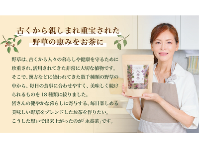 年齢のゆらぎにやさしく寄り添う新習慣のお茶「永養茶」|登録者数65万人の管理栄養士「関口絢子」が18種類の野草を独自にブレンド
