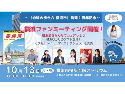 10月13日(月祝)に横浜市役所1階アトリウムにて開催する「横浜ファンミーティング」。『地球の歩き方 横浜市』発売1周年を記念し、本に登場した市内企業もブース出展で参加。限定コラボレーション商...