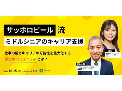株式会社エンファクトリー(東京都千代田区、代表取締役社長CEO加藤健太)は、2025年10月15日(木)14:0015:00にて、『サッポロビール流 ミドルシニアのキャリア支援~仕事の幅とキャ...