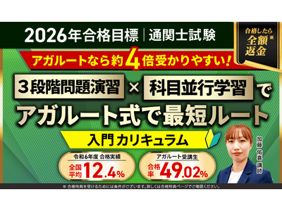「3段階の問題演習」と「科目並行学習」を組み合わせたアガルート式で合格の最短ルートへ! 株式会社アガルート(本社:東京都新宿区、代表取締役:岩崎 北斗、以下「アガルート」)が運営する「アガルー...