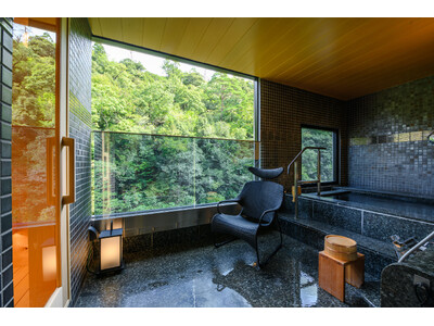 源泉露天風呂付きの洋室に"サウナ水風呂"が加わる。プライベート空間で楽しむ本格ロウリュと、山中温泉の絶景を望む森林外気浴で、唯一無二の"ととのう"体験を。 渓流を望む露天風呂サウナ水風呂外気浴...