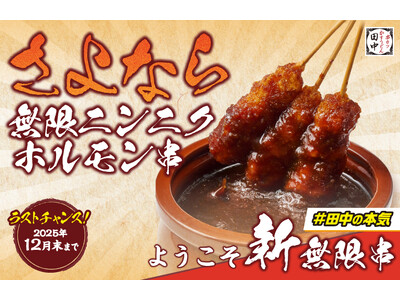 1000万本突破した無限ニンニクホルモン串!食べられるのは2025年12月末まで!! 株式会社串カツ田中ホールディングス(本社:東京都品川区東五反田、代表取締役社長 CEO:坂本 壽男)は、販...