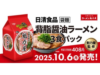 ラーメン魁力屋監修の袋麺「魁力屋監修 背脂醤油ラーメン 3食パック」が日清食品より、2025年10月6日(月)~発売されます。 京都北白川ラーメン魁力屋をチェーン展開する株式会社魁力屋( 本社...