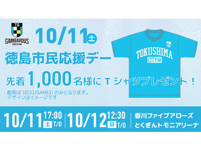 徳島ガンバロウズは、10月11日(土)のホームゲーム第3節を「徳島市民応援デー」として開催し、徳島市内に在住在学の小中高生を無料招待企画を実施しておりますが、10月11日に来場された方先着1,...
