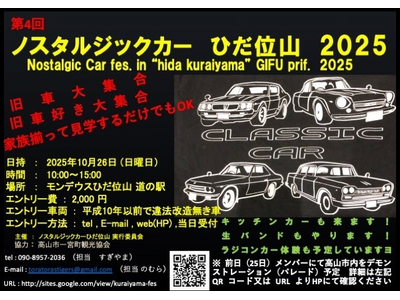 【飛騨高山・岐阜県高山市】旧車好き集まれ!「第4回ノスタルジックカーひだ位山2025」開催