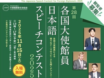 【一般観覧者募集】各国大使館員が日本語でスピーチ!『第28回・各国大使館員日本語スピーチコンテスト2025』