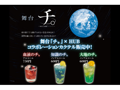 舞台『チ。 地球の運動について』公演を記念して、英国風PUB「HUB」とのコラボレーションが決定。東京愛知大阪のHUB3店舗にて、期間限定で作品をイメージしたカクテル3種が登場! コラボ期間は...