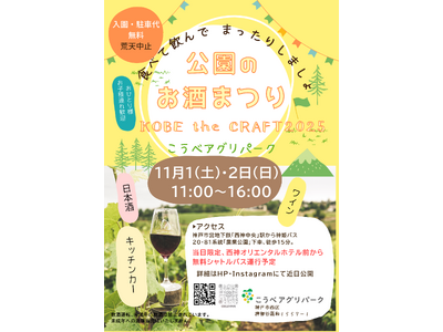 主催:株式会社MEリゾート但馬 こうべアグリパーク おひとり様、お子様連れ歓迎。当日は西神オリエンタルホテル前から無料シャトルバス運行予定。[荒天中止] 開催の背景 「公園のお酒まつりKOBE...