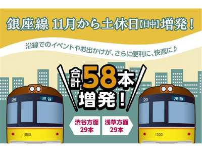 ~2025年11月1日(土)から銀座線土曜日休日ダイヤの運転本数を増発します~ 東京地下鉄株式会社(本社:東京都台東区、代表取締役社長:小坂 彰洋、以下「東京メトロ」)では、銀座線沿線のイベン...