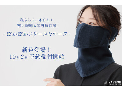 日焼け対策フェイスカバー「ヤケーヌ」より秋冬モデル「ぽかぽかフリースヤケーヌ」に新色登場!10月2日より予約受付開始!