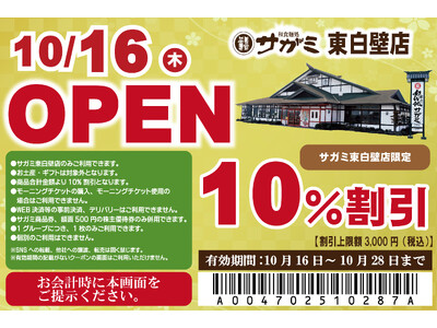 10月16日(木)和食麺処サガミ東白壁店グランドオープン!