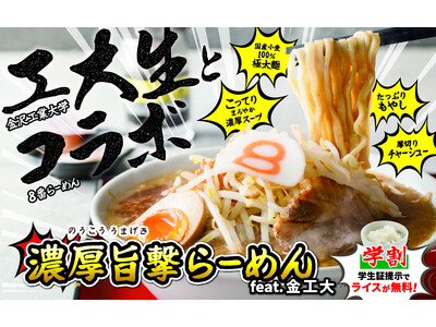 学生考案「濃厚旨撃(のうこううまげき)らーめん feat.金工大」8番らーめん金沢工大前店限定で10月10日販売開始 58年の歴史を持つ北陸のソウルフード「8番らーめん」を展開する株式会社ハチ...