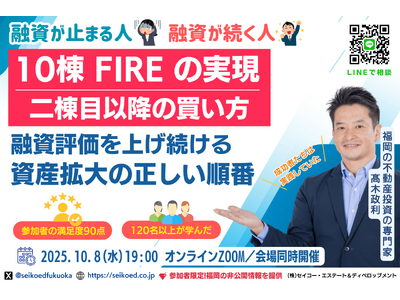 10/8開催|120名以上が学んだ福岡の不動産投資セミナー。銀行融資目線で選ぶFIREを目指せる"2棟目以降の物件選びと投資戦略"