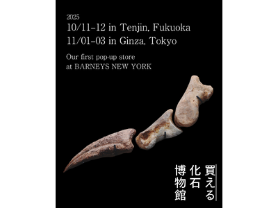 福岡県福岡市の「買える化石博物館」(運営:株式会社SASAMO)は、バーニーズ ニューヨーク銀座本店および福岡店にて、初となるポップアップを実施します。東京での販売は、今回が初めての開催となり...