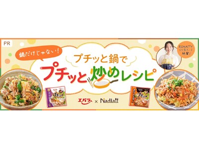 ~特別企画ページ「プチッと鍋でプチッと炒めレシピ」にて、「プチッと鍋」を使った炒めものレシピを公開中~ Nadia株式会社(東京都港区/代表取締役社長 葛城 嘉紀 以下「Nadia」)とエバラ...