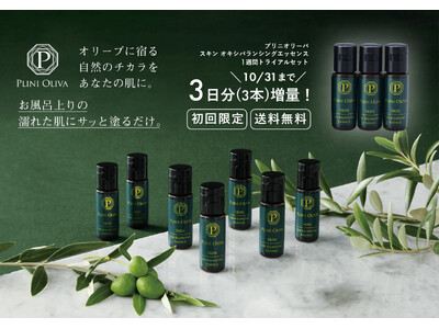 濡れた肌にオリーブオイルを塗布することで保湿効果が増大 スキンケアブランド「PLINI OLIVA(プリニオリーバ)」10月1日から「トライアルセット」を1ヶ月限定で特別販売