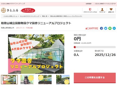 和歌山県和歌山市とさとふる、老朽化したクマ園舎を改修し、4代目となる新たなクマを迎えるため寄付受け付けを開始