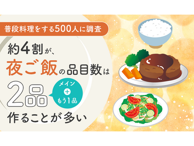 【普段料理をする500人に調査】約4割が、夜ご飯の品目数は「2品(メイン+もう1品)作ることが多い」と回答