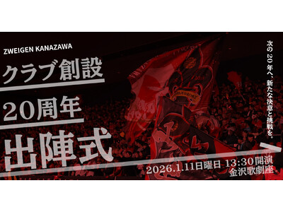 この度、ツエーゲン金沢(J3)は2026年1月11日(日)に「クラブ創設20周年出陣式」を開催することとなりましたのでお知らせいたします。 ツエーゲン金沢は来年、皆さまに支えられクラブ創設20...