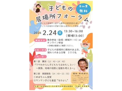 2月24日(火)「子どもの居場所フォーラム」を開催します。 地域のつながりの希薄化、少子化の進展により、子ども同士が遊び、育ち、学び合う機会が減少しています。これを踏まえ、子ども食堂をはじめ、...