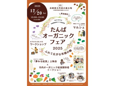 マルシェには約30ブースが出店、親子で楽しめるワークショップや映画の上映も 12月20日(土)、兵庫県立丹波の森公苑(兵庫県丹波市柏原町柏原5600)で、「ふれて広がる有機の輪」と題し、オーガ...