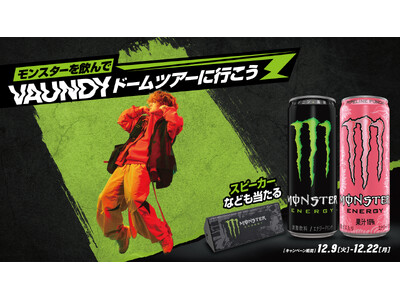 国内No.1エナジードリンク(※)モンスターエナジーは、2025年12月9日(火)~2025年12月22日(月)の期間、日本を代表するマルチアーティストVaundyとのキャンペーン「モンスター...