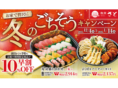【和食さと】年末年始テイクアウト早割10%OFFで「寿司盛り合わせ」などがお得!!