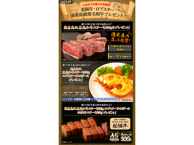 LION FX豪ドル円限定 松阪牛・ロブスター・国産高級黒毛和牛プレゼント!を実施!