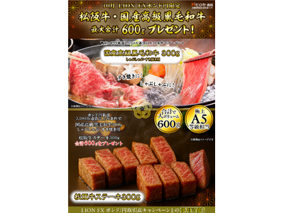 LION FXポンド円限定 松阪牛・国産高級黒毛和牛最大600gプレゼント!を実施!