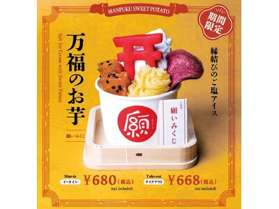 縁起物専門店が新メニューを発売【期間限定】「縁結びのご塩アイス 万福のお芋」