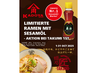 かどや製油がドイツデュッセルドルフの人気ラーメン店『麺処 匠』とコラボレーション。ごま油の香りを楽しむ新たな日本食体験を届けます。 かどや製油株式会社(本社:東京都品川区、代表取締役社長:北川...