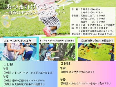 Socioak SEED BASE 長瀞げんきプラザ(指定管理者:株式会社サンアメニティ)は、2026年5月5日(火祝)から6日(水)にかけて、未就学から小学校2年生までのお子様とその保護者を...