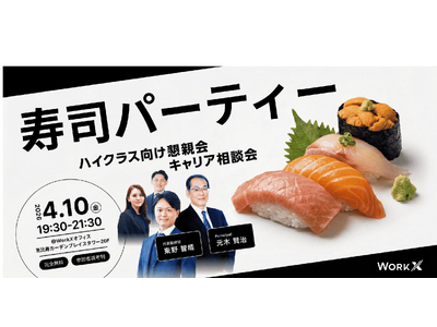 株式会社WorkX(東京都渋谷区、代表取締役:東野智晴、以下「WorkX」)は、4月10日(金)に、コンサルティング業界の実態や魅力を深く知っていただくための懇親会兼キャリア相談会「寿司パーテ...