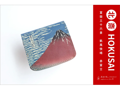 葛飾北斎「赤富士」×栃木レザーのミニ財布。最強の開運日10月6日に向けて登場。