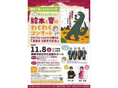 音楽と絵本『おまえ うまそうだな』などを生演奏と共に。11月8日(土)開催 舞鶴市は、令和7年11月8日(土)に舞鶴市総合文化会館で、0才から入場可能なコンサートを開催します。スクリーンに映る...